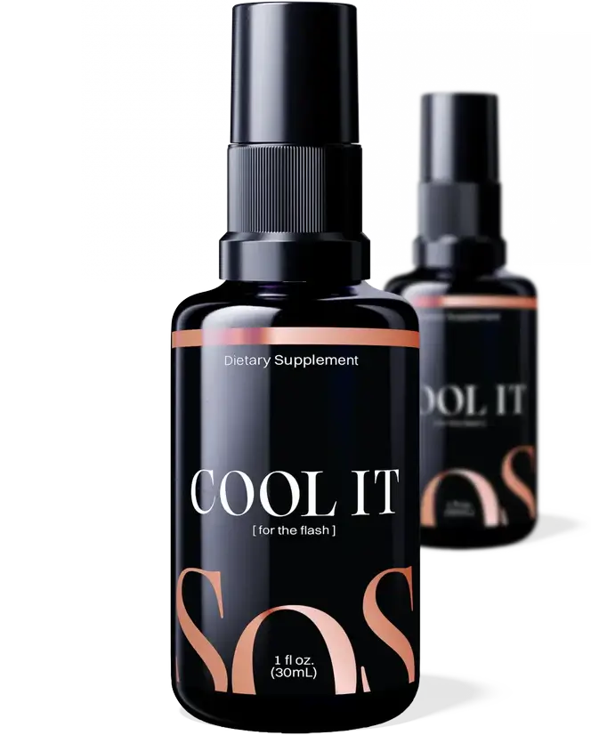 COOL IT is a fast-acting, under-the-tongue, mint-tasting spray that takes the heat out of hot flashes and night sweats. No hormones. No drama. Just real relief, right when you need it.